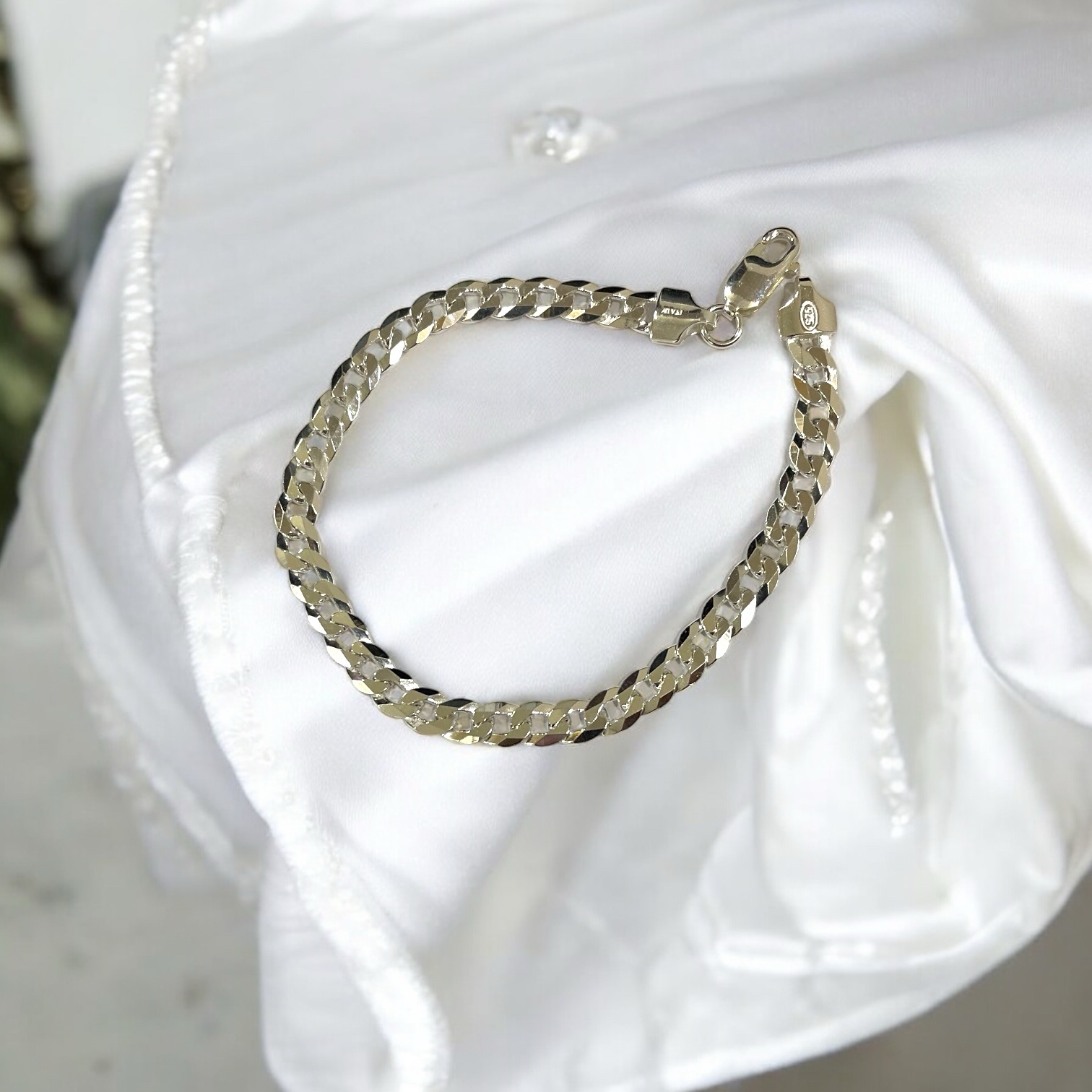 Classic Rhodium-Plated Curb Chain Bracelet
