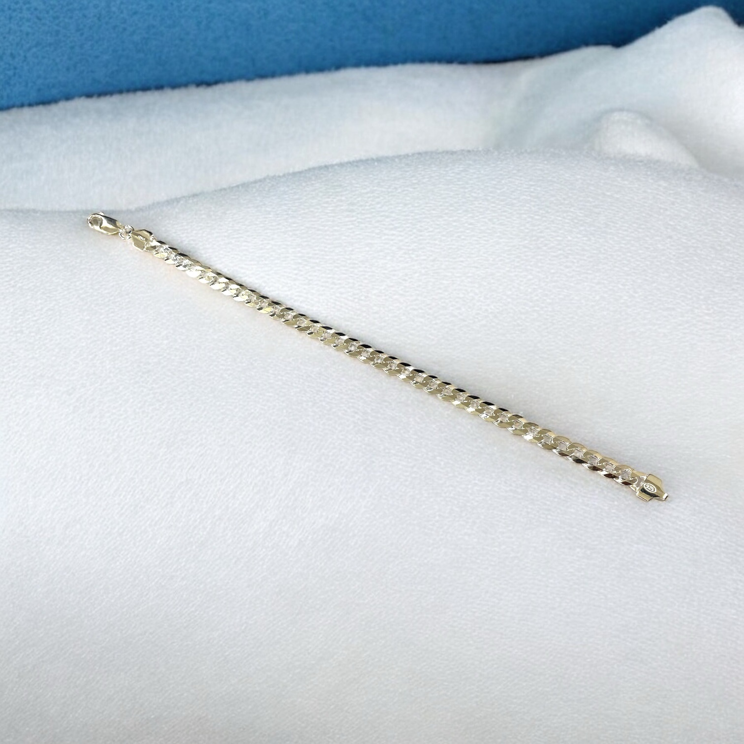 CompareThis timeless sterling silver bracelet features a sleek curb chain design, known for its interlocking flat links that reflect light with a masculine elegance. The rhodium plating enhances the bracelet’s luster while providing superior protection against tarnish and wear. Its sturdy clasp ensures a secure fit, making it an ideal everyday accessory for the modern man who values both style and durability.