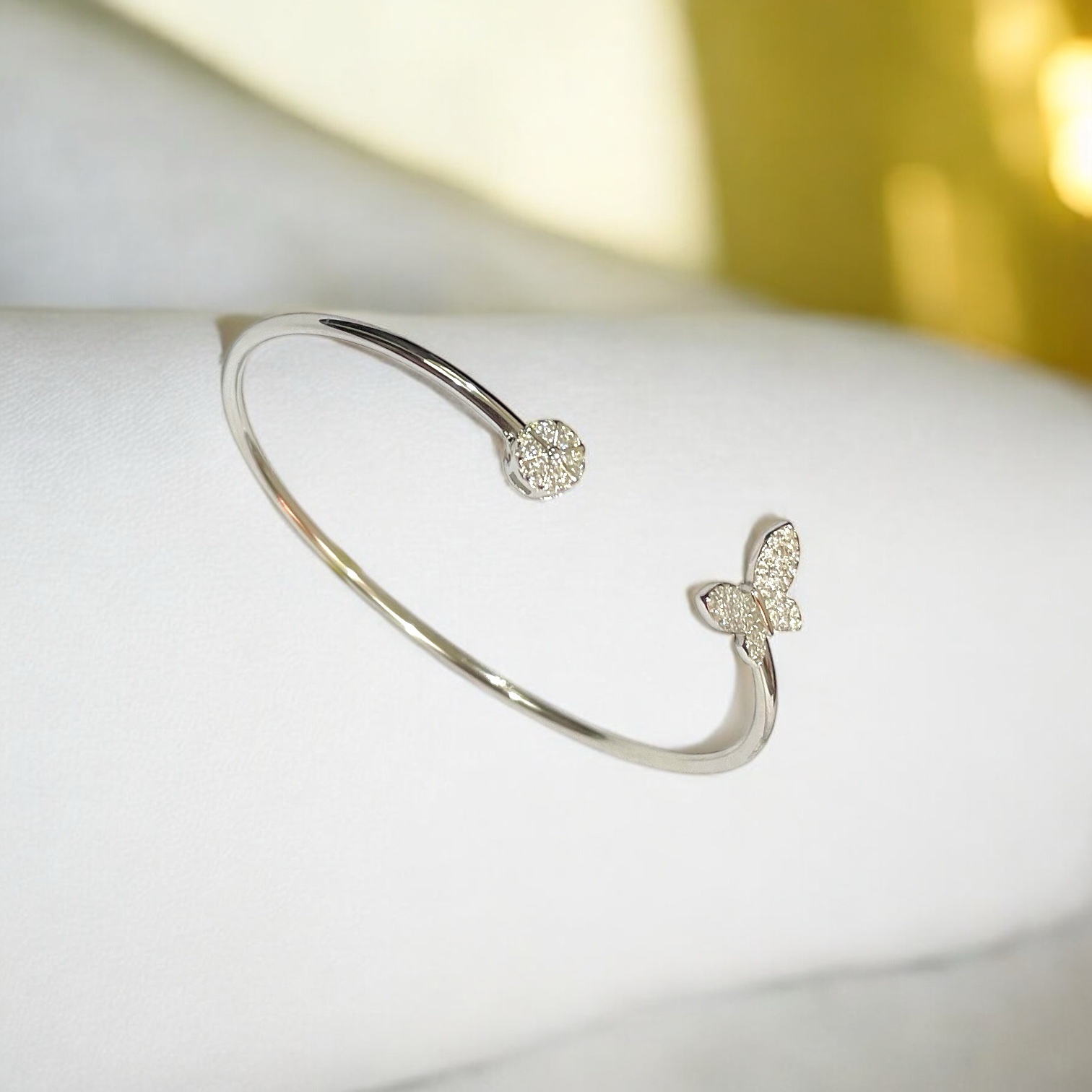 Celebrate grace and beauty with the Fluttering Elegance Sterling Silver Pendant Set. Featuring a dazzling butterfly motif, this rhodium-plated collection shines with intricately set stones that reflect light from every angle. The set includes a stunning pendant necklace, matching earrings, a delicately crafted open bangle, and a chic adjustable ring — all designed to complement one another.