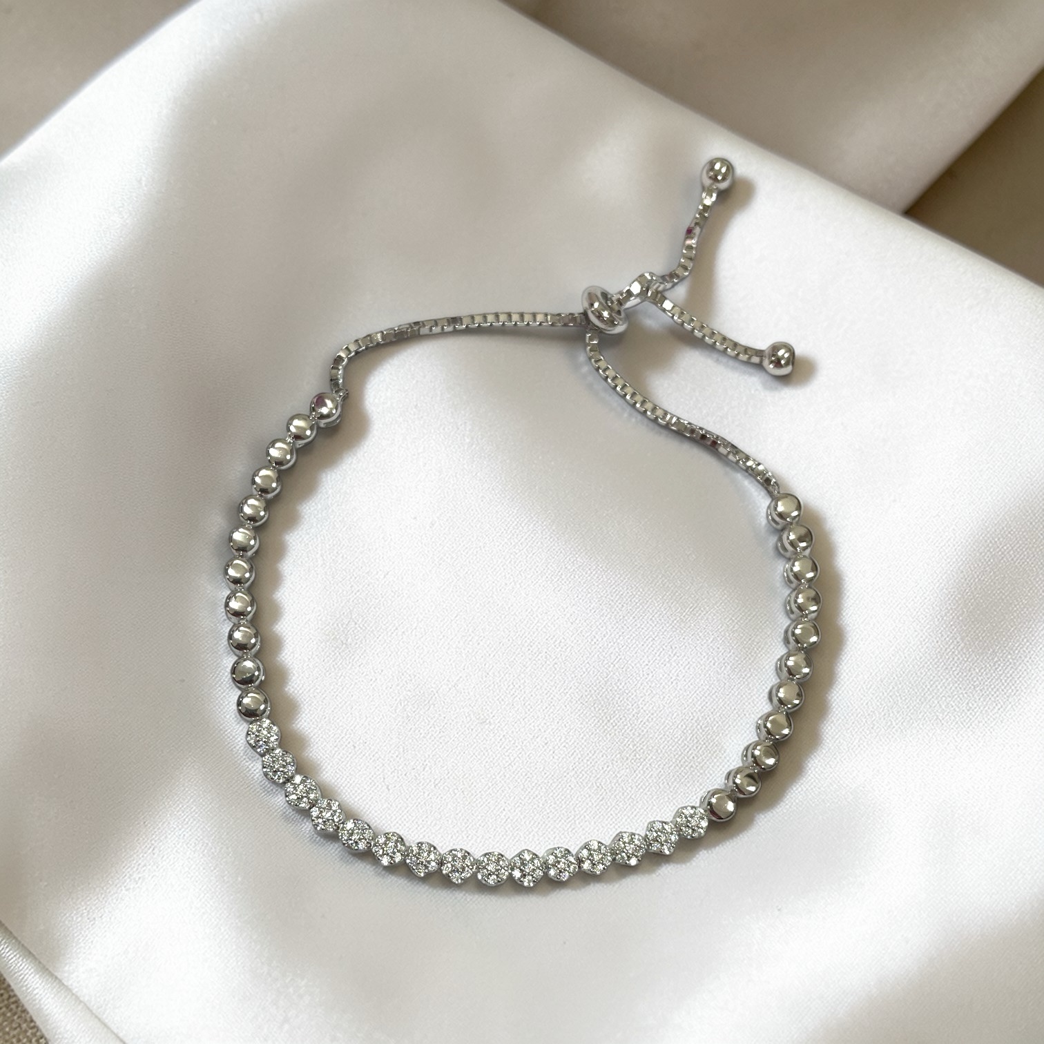 Perfectly balanced with intricate silver beadwork, this bracelet is a versatile choice for both casual and formal occasions. With its adjustable clasp, it ensures a comfortable fit, making it a standout addition to any jewelry collection.