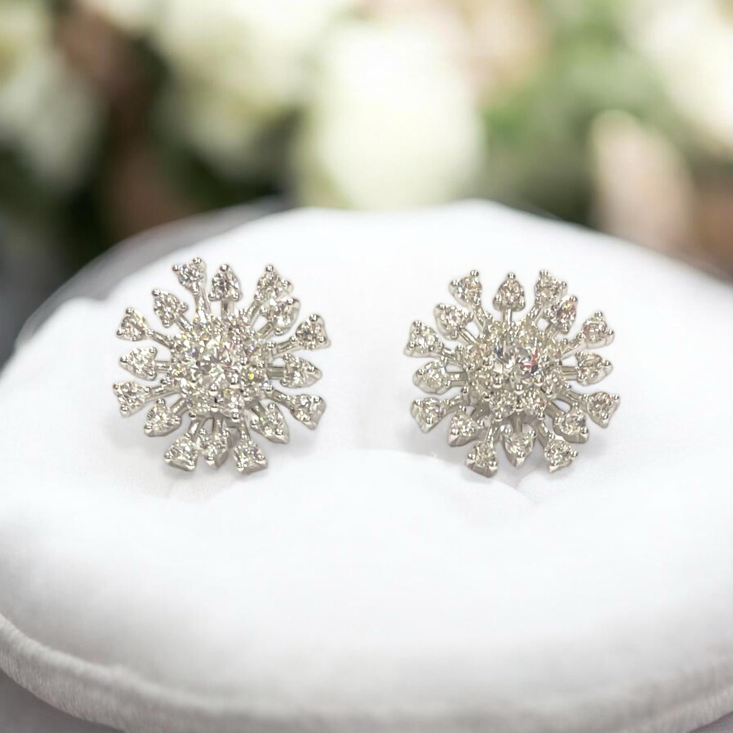 The intricate arrangement creates a sophisticated sparkle, making these earrings a statement piece for any special occasion or evening ensemble.